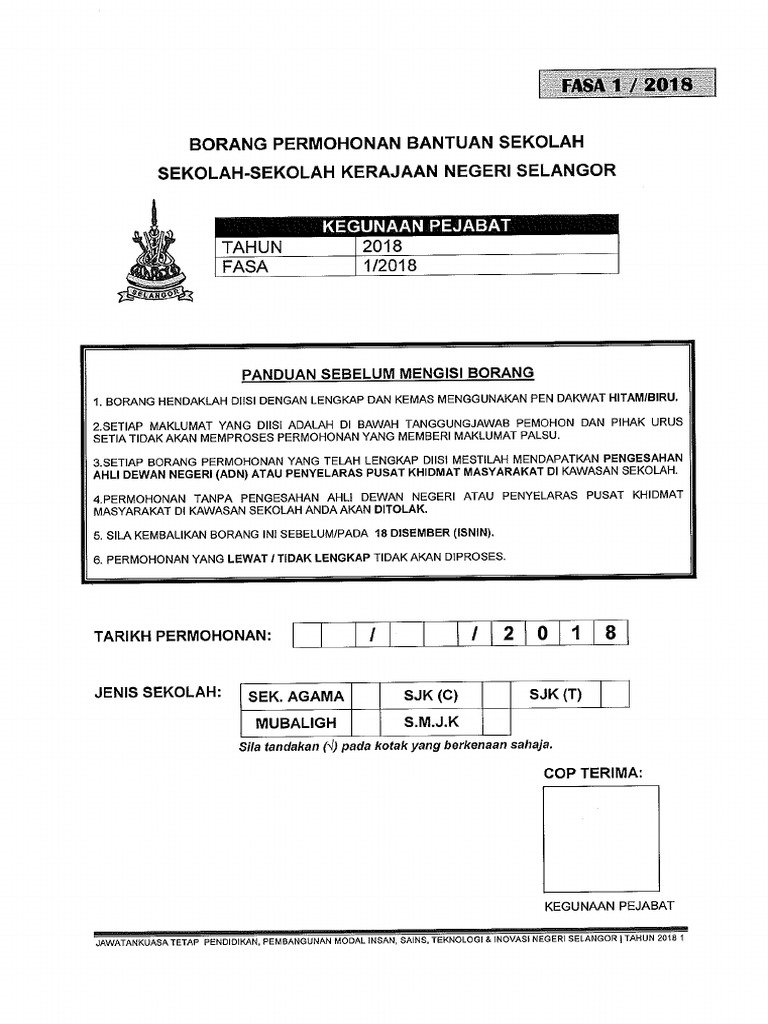borang permohonan bantuan sekolah sekolah kerajaan negeri selangor